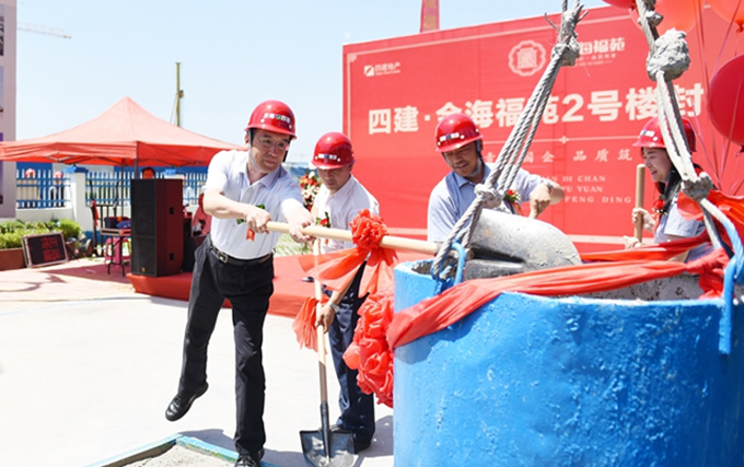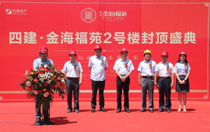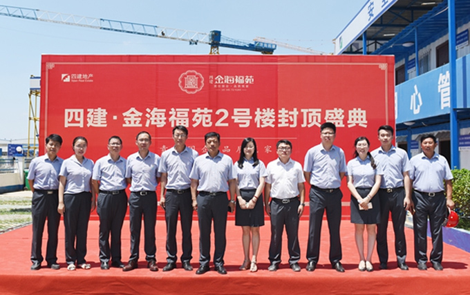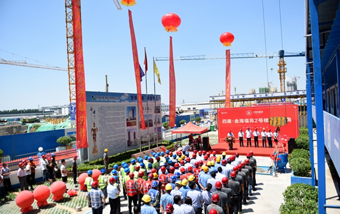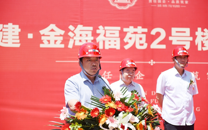 徐總首先介紹了金海福苑項目的概況和定位,金海福苑項目是四建地產(chǎn)繼金海花園之后在集團內(nèi)部繼續(xù)實施“自主開發(fā)-自主建設(shè)-自主服務(wù)”全產(chǎn)業(yè)鏈運營模式的又一升級力作。徐總隨后指出,自項目奠基以來,在集團的大力支持下,地產(chǎn)與三項目公司、409項目部及眾參建單位本著“一盤棋、一家人、一條心”的原則,陸續(xù)完成了各項施工任務(wù),保障了計劃節(jié)點的按時達成。6月19日,在曹董事長的帶領(lǐng)下,集團在工地現(xiàn)場召開了第二次金海福苑項目現(xiàn)場調(diào)度會,進一步明確了福苑下步的各項建設(shè)目標。徐總要求各參建單位要以今天的封頂儀式當做新的起點,繼續(xù)保持不驕不躁、艱苦奮斗的工作作風,繼續(xù)發(fā)揚團結(jié)協(xié)作、銳意進取的工作精神,為全面完成福苑的各項工作目標而不懈努力,為濟陽貢獻一座實實在在的精品工程!