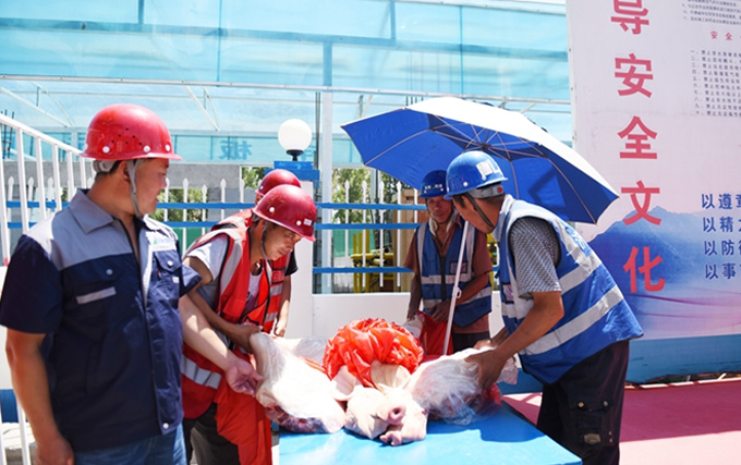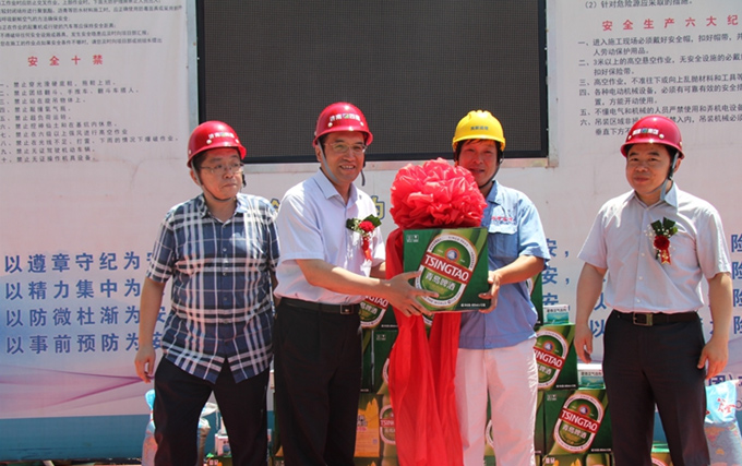 儀式結(jié)束后,曹董事長特地慰問了在炎熱天氣里辛勤勞作的工人們,給大家發(fā)放了防暑降溫的食品藥品,保障施工人員的安全生產(chǎn)和身體健康。