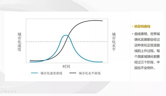 曲線表明,世界城鎮(zhèn)化發(fā)展都會(huì)經(jīng)過(guò)這種類(lèi)似正弦波曲線的上升過(guò)程。每個(gè)國(guó)家城鎮(zhèn)化都要經(jīng)過(guò)三個(gè)階段,中國(guó)也不會(huì)例外。