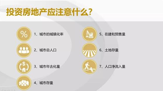 一般城市的房地產(chǎn)市場(chǎng),要看這個(gè)城市的城鎮(zhèn)化率、城市總?cè)丝?、城市年去化量、城市存量、在建量和預(yù)售量、土地存量、人口凈流入量等指標(biāo)。
