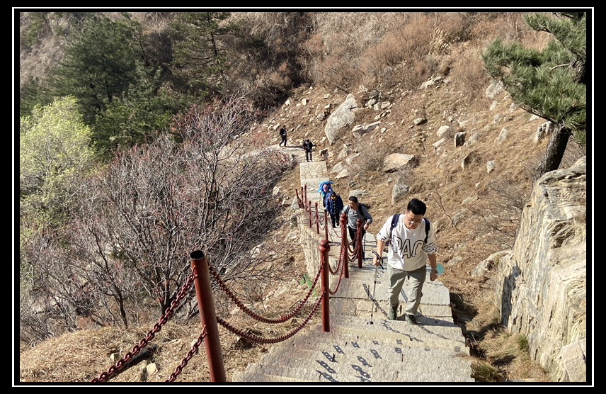 深秋的泰山,白草紅葉黃花,雖有些料峭寒冷,卻也能感受其冷峻之美,此時(shí)的天氣爬泰山也是極好的。雖然石板臺階陡峭,但是大家的精神狀態(tài)非常飽滿,奮勇爭先地向山頂進(jìn)發(fā)。登山的過程也是一個(gè)不斷超越自我的過程,前路漫長但也抵不過堅(jiān)持不懈的腳步,大家相互鼓勵,相互幫助,有同事在登山過程中出現(xiàn)了小腿抽筋的情況,身邊的人立即上前對其進(jìn)行肌肉拉伸,稍事休息后繼續(xù)并肩攀登。