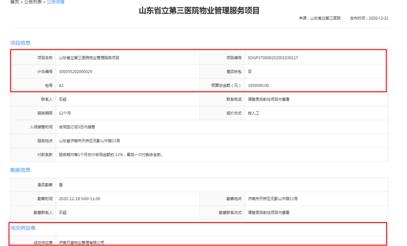 2020年12月22日,繼省立三院保潔項目之后,濟(jì)南萬盛物業(yè)管理有限公司再次順利中標(biāo)省立三院維修項目。