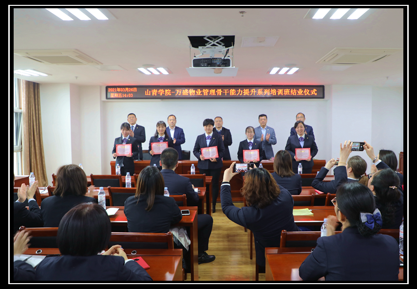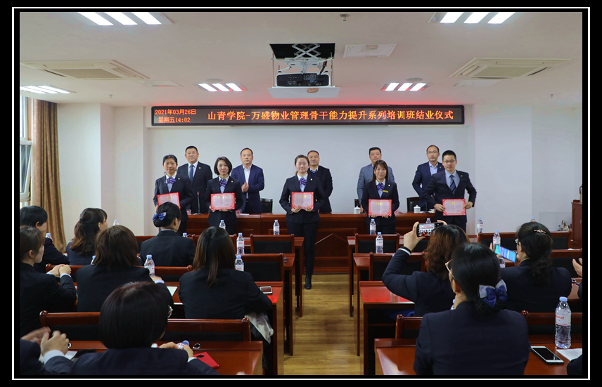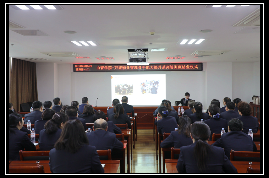 為進一步鞏固學習成果,加深后期雙方交流合作,3月26日下午,“山青學院-萬盛物業(yè)管理骨干能力提升系列培訓班”結(jié)業(yè)儀式在四建地產(chǎn)大會議室隆重舉行。