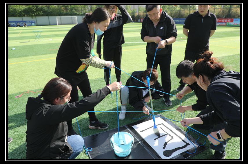 每輪比賽都精彩紛呈,熱鬧歡快,參賽選手精神飽滿,部門隊友加油助威,整個活動過程既充滿競賽的激烈又不失運動的趣味。最后的“神筆馬良”環(huán)節(jié)更是讓人拍案叫絕,每部門派出8名代表,將全部繩子綁在一根大毛筆上,然后每人控制一根繩子,在眾人齊力控制的基礎上揮動大毛筆在卡紙上寫出匠心的“匠”,面對高難度的活動要求,員工們斗志昂揚,積極溝通協(xié)調,紛紛在幾秒鐘時間內高效完成。此項運動不僅弘揚了五一勞動節(jié)的“工匠精神”,更彰顯了四建地產對“責任國企,品質筑家,匠心之作”的不懈追求。