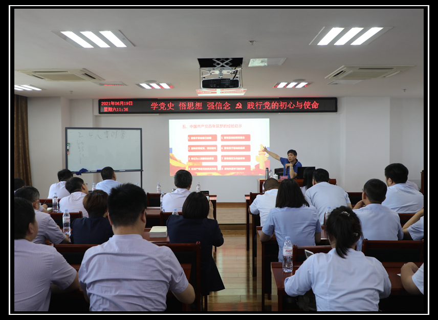 百年征程波瀾壯闊,百年初心歷久彌新。在建黨百年來臨之際,為深入學習貫徹習近平總書記重要論述,進一步增強黨員的歷史覺悟性,激發(fā)廣大黨員學史明理、學史增信、學史崇德、學史力行的熱情,提高黨支部戰(zhàn)斗力。6月19日上午,四建地產(chǎn)黨支部在美林大廈23層大會議室開展了題為“學黨史 悟思想 強信念——踐行黨的初心使命”黨史教育活動,本次活動共40余人參加,會議由支部副書記楊沖同志主持。