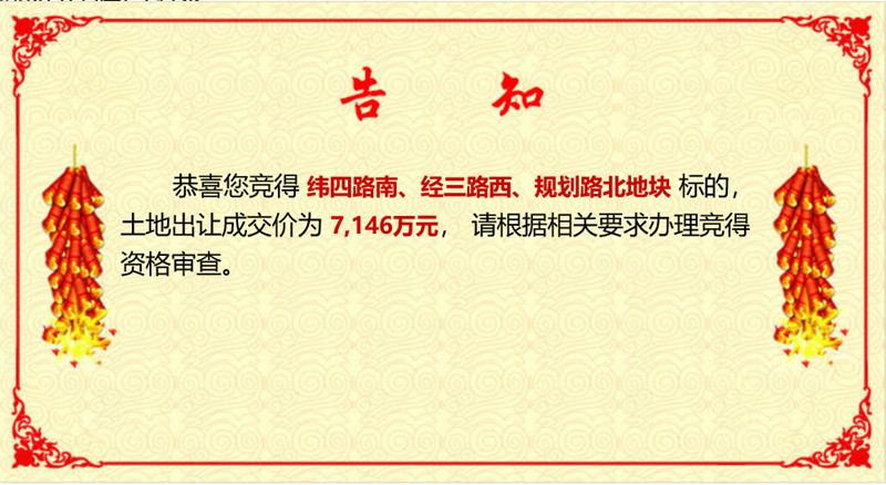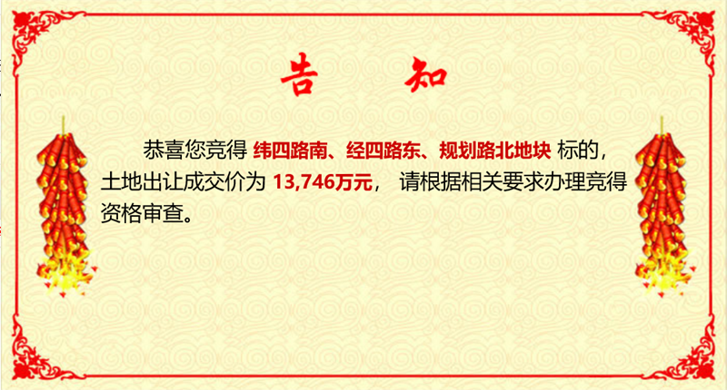 2021年12月6日,四建地產(chǎn)以3.3億元競得位于濟陽區(qū)緯四路以南、經(jīng)四路東、緯三路北、經(jīng)三路西三宗土地的建設用地使用權,本次成交宗地面積約154畝。該項目規(guī)劃總用地面積約202畝,其中2021年5月24日,四建地產(chǎn)先于9966萬元競得該區(qū)域首期供地,土地面積約43.6畝。截止目前,共競得該宗地197.6畝,剩余部分待濟陽區(qū)政府完成征收手續(xù)后一并完成收儲工作。
