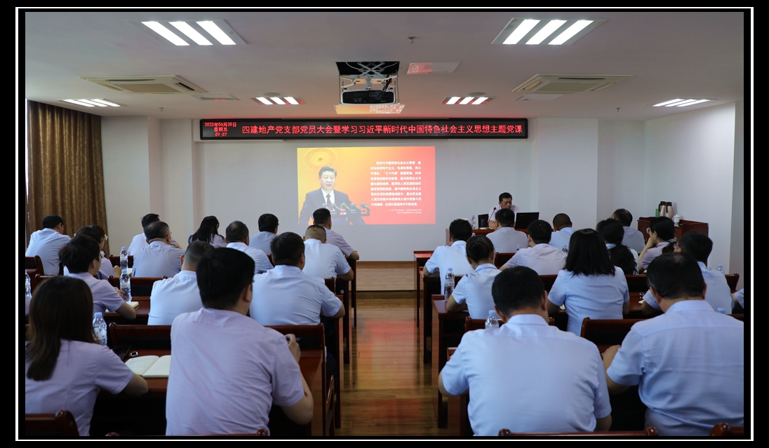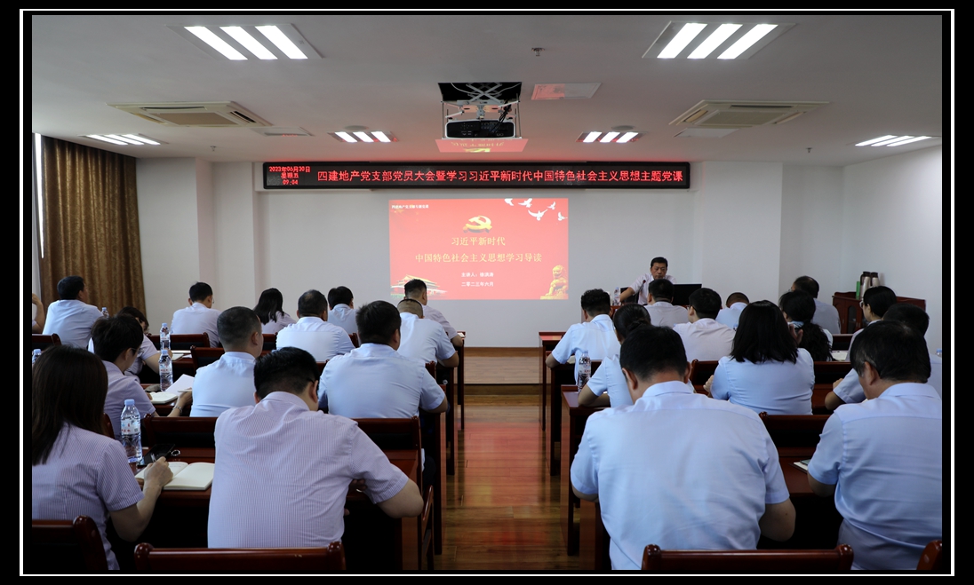 為深入學(xué)習(xí)貫徹習(xí)近平新時(shí)代中國(guó)特色社會(huì)主義思想,引導(dǎo)廣大黨員“學(xué)思想、強(qiáng)黨性、重實(shí)踐、建新功”,6月30日上午,四建地產(chǎn)黨支部組織開(kāi)展黨員大會(huì)暨專題黨課。四建集團(tuán)黨委委員、四建地產(chǎn)黨支部書(shū)記徐洪濤同志以“習(xí)近平新時(shí)代中國(guó)特色社會(huì)主義思想學(xué)習(xí)導(dǎo)讀”為主題,為全體黨員上了一堂生動(dòng)黨課。本次大會(huì)共40名黨員參加,會(huì)議由地產(chǎn)支部副書(shū)記楊沖主持。