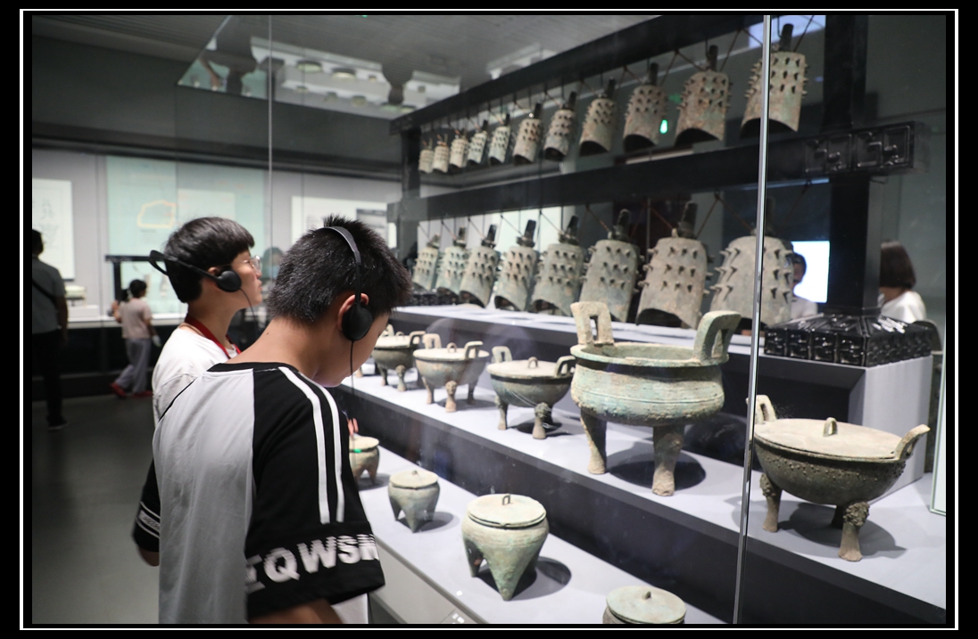 在智能導(dǎo)覽機(jī)器的講解中,學(xué)生們參觀了山東省博物館新推出的“海岱日新——山東歷史文化陳列”。該展覽分為史前、夏商周以及秦漢至明清三個(gè)部分,全面立體展現(xiàn)了山東六十萬年人類史、一萬年文化史、五千年文明史、三千年齊魯文化史、一百年奮斗史。在展覽中,學(xué)生們欣賞到了許多珍貴的文物,如大汶口文化八角星紋彩陶豆、西周頌鼎等。此外,四建地產(chǎn)員工還帶領(lǐng)他們依次參觀了商代亞醜鉞、銀雀山漢簡等十件“鎮(zhèn)館之寶”,濟(jì)陽小朋友們?cè)谝魂囮嚫袊@聲中感受著齊魯大地的滄桑巨變,體會(huì)著中華優(yōu)秀傳統(tǒng)文化的魅力。