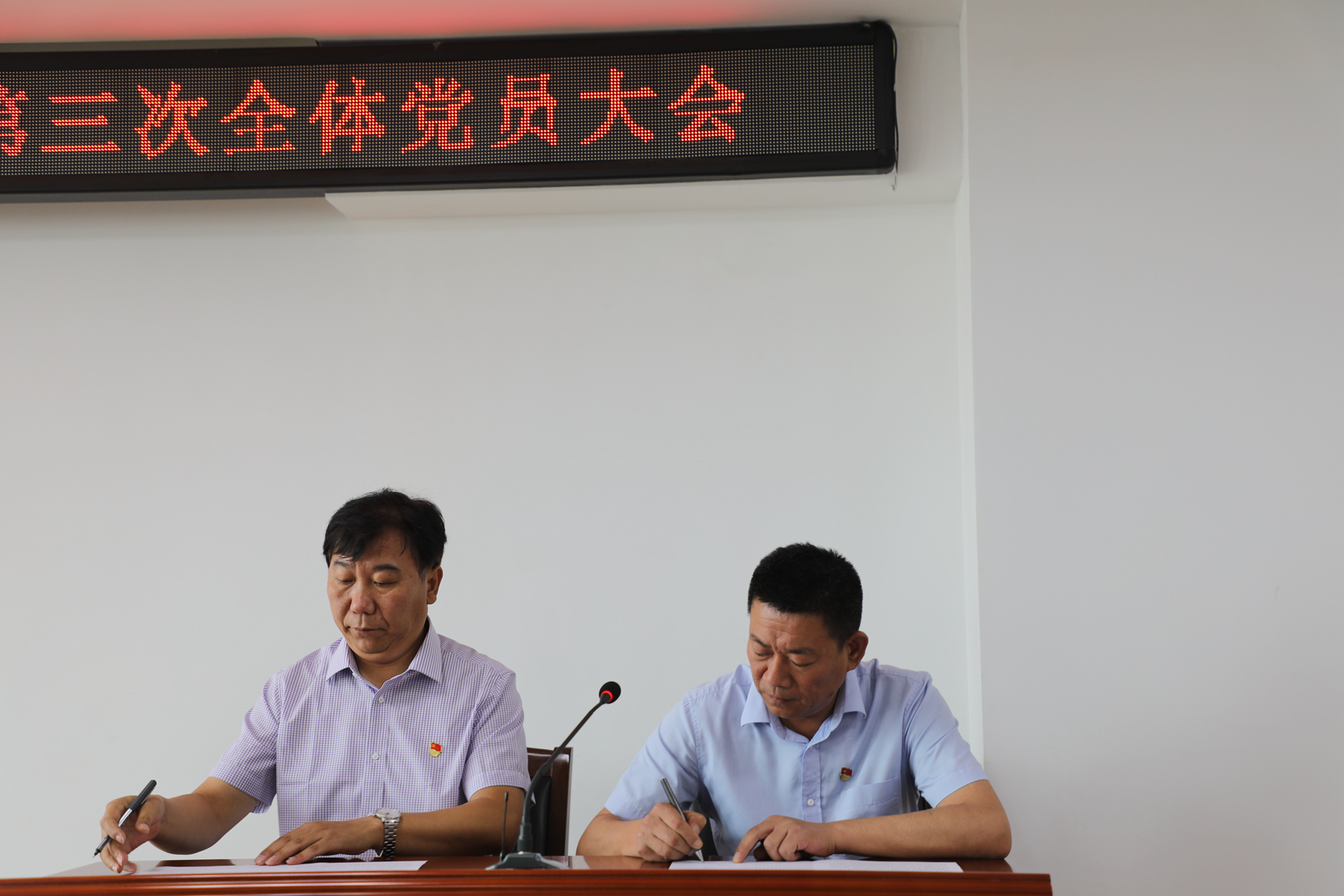 會議第二項,集團公司黨委委員、四建地產(chǎn)黨支部書記尚華與地產(chǎn)公司4名中層干部代表簽署《廉政目標(biāo)責(zé)任書》。