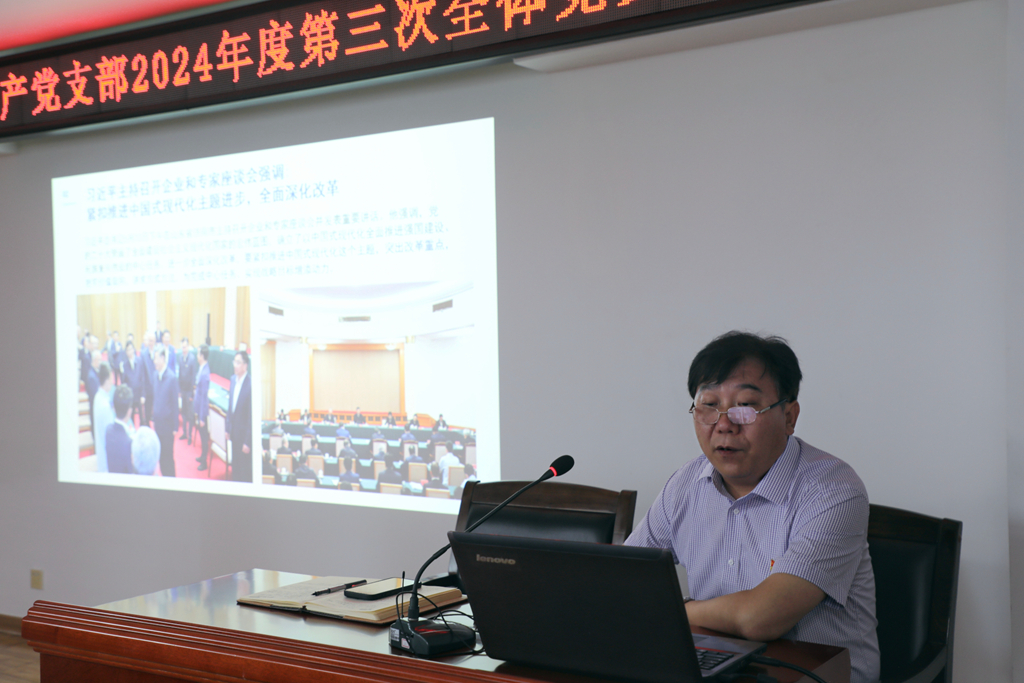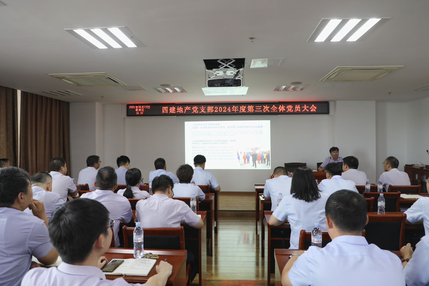 6月28日下午,四建地產(chǎn)黨支部在美林大廈23層大會議室召開2024年度第三次全體黨員大會暨專題黨課,36名正式黨員參加會議,會議由黨支部副書記楊沖主持。