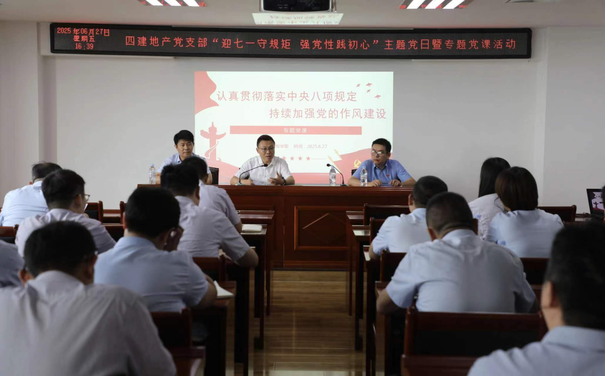 為慶祝中國共產(chǎn)黨成立104周年,深入學(xué)習(xí)貫徹習(xí)近平新時代中國特色社會主義思想,進(jìn)一步增強(qiáng)黨員紀(jì)律意識、錘煉黨性修養(yǎng)。6月27日下午,四建地產(chǎn)黨支部在美林大廈23層大會議室開展“迎七一守規(guī)矩 強(qiáng)黨性踐初心”主題黨日暨專題黨課活動,以扎實(shí)的學(xué)習(xí)教育和作風(fēng)建設(shè)向黨的生日獻(xiàn)禮。